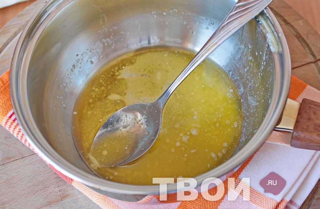 Шаг 7. Сливочное масло растопим и при помощи кисточки смажем всю поверхность теста.