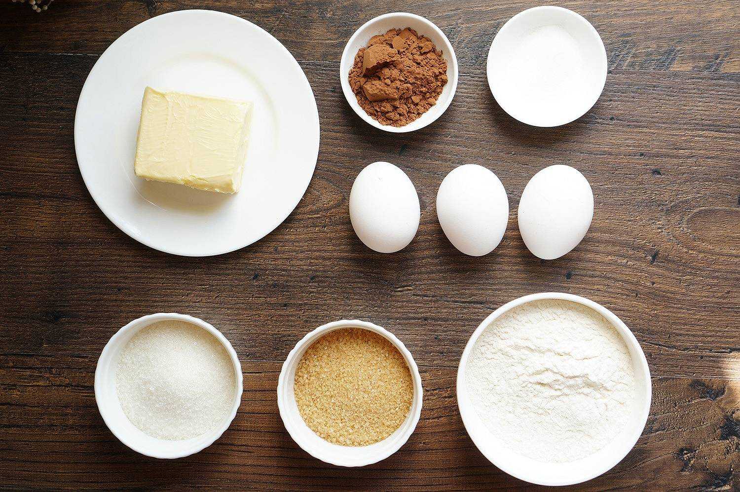 Смешайте в миске муку, сахар, какао, соду, разрыхлитель и соль.
