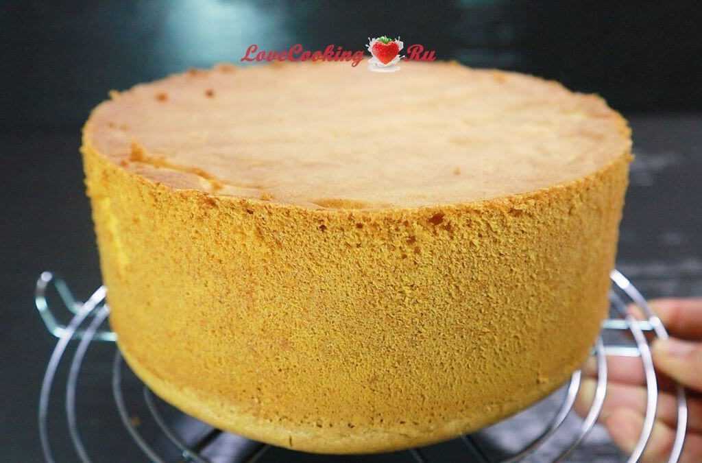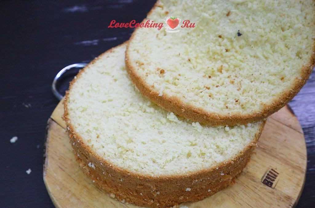 - Вынимаем готовый корж из духовки, извлекаем его из формы и позволяем ему остыть. Таким же образом выпекаем второй корж из оставшегося теста.