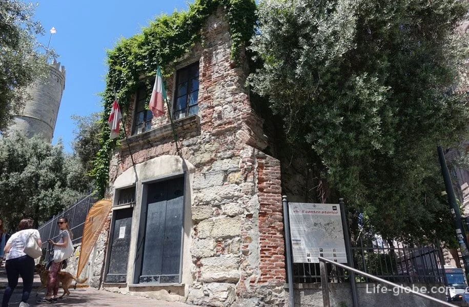 Дом Христофора Колумба (Casa di Cristoforo Colombo) является реконструкцией 18 века, оригинального средневекового здания, которое состоит из двух этажей: первый этаж использовался как мастерская отца, Доменико Коломбо, который занимался ткачеством шерсти и торговлей; на верхнем же этаже располагался жилой семейный дом. Согласно письменным источникам, Христофор жил здесь в сроки, ориентировочно, между 1455 и 1470 годами.