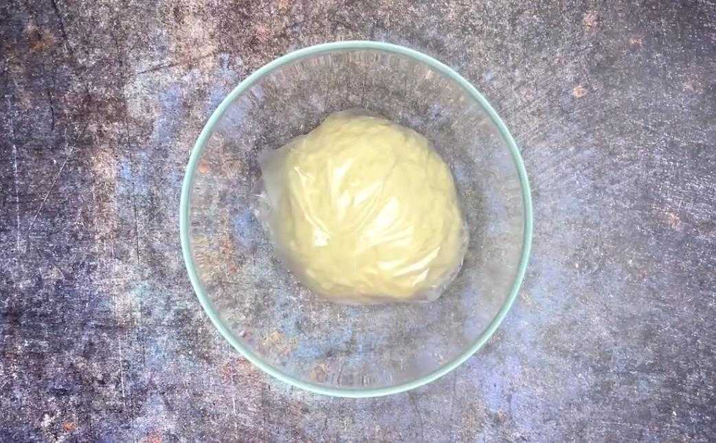- Накрыть тесто пищевой пленкой и убрать в холодильник на 30 минут.