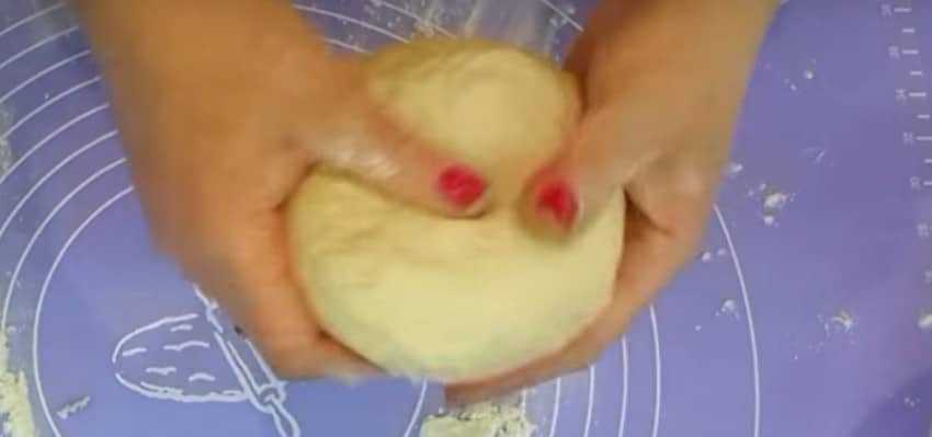 Замесить тесто. Оно должно получиться однородным, нелипким. Сформировать из него шар, прикрыть салфеткой и отставить минут на 15.