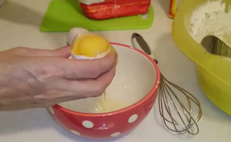 Очищенные от кожицы кабачки натираются на крупную терку и отставляются на несколько минут, натертая масса должна постоять.В это время готовится тесто: взбитые яйца тщательно перемешиваются с просеянной мукой.