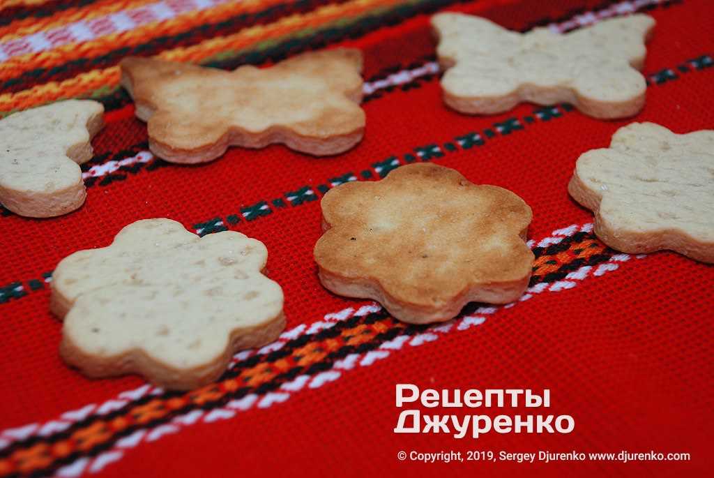 Количество муки в тесте может немного меняться в зависимости от типа муки, но в любом случае важно не класть ее слишком много ни при замешивании теста, ни при раскатывании, тогда готовое печенье получается более рассыпчатым (чем больше муки, тем оно плотнее)