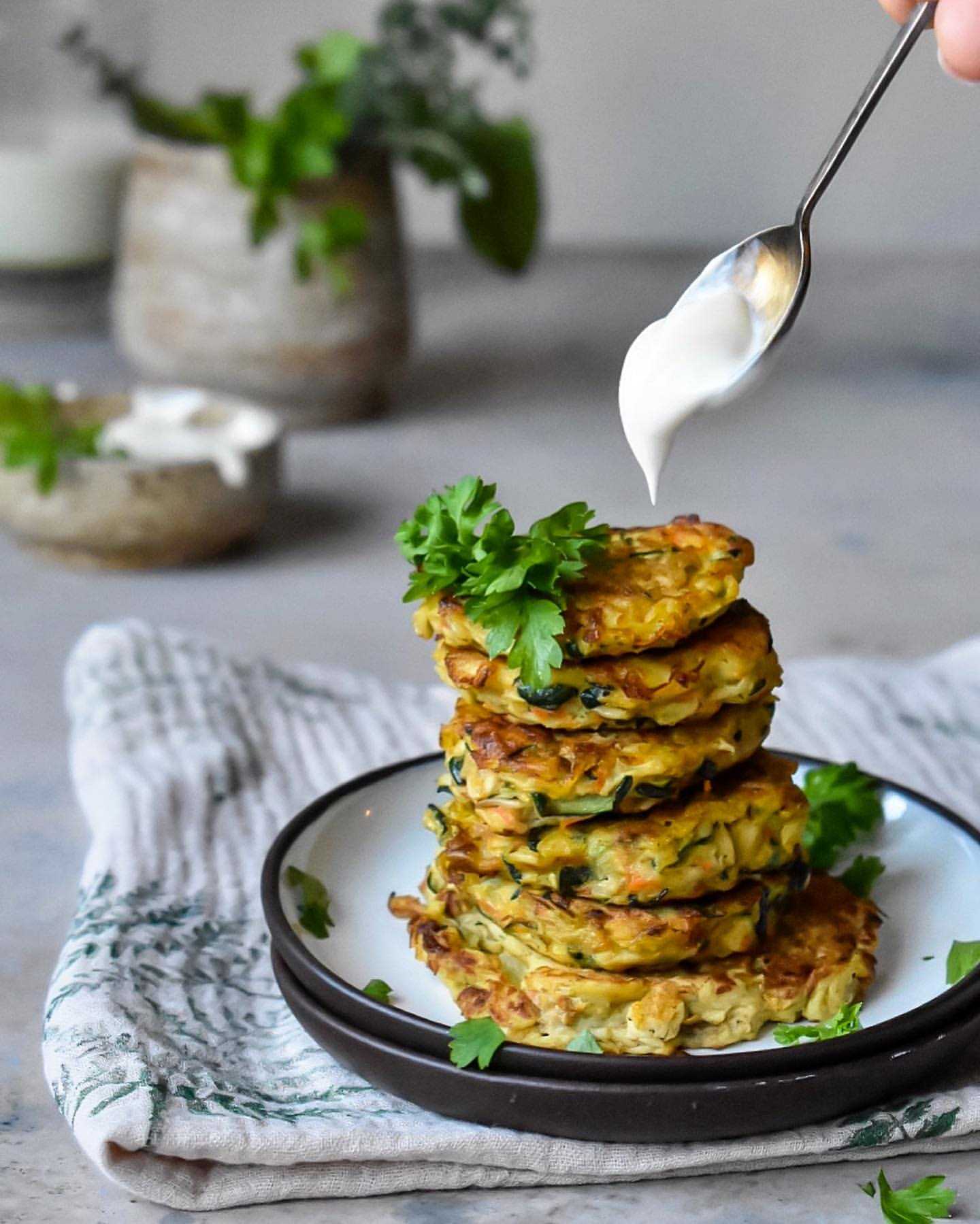 Готовые пп оладьи из курицы можно подать со сметаной, низкокалорийным томатным соусом или любым другим диетическим дополнением!