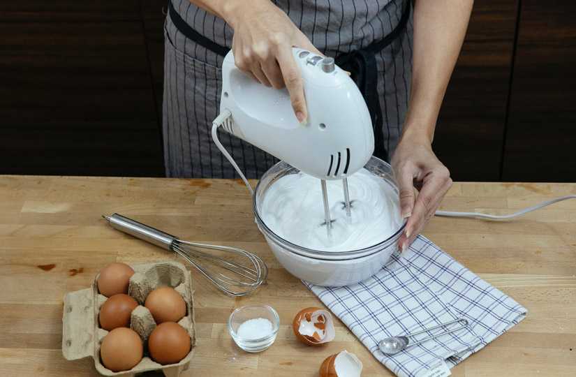 - Сахар тщательно взбивается с яйцом. Сначала лучше использовать миксер на минимальной скорости, чтобы растворился песок, а затем можно увеличить скорость и превратить всю массу в однородную.