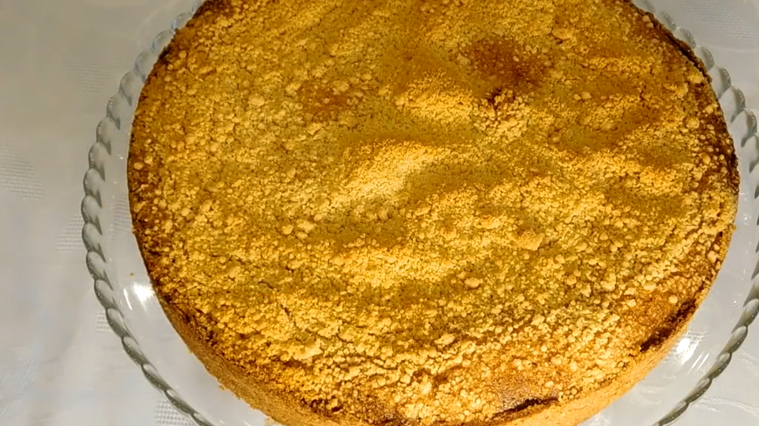 Выпекаем пирог Крошка в разогретой до 180 градусов духовке 40-50 минут до легкого румянца, затем вынимаем, остужаем и нарезаем.