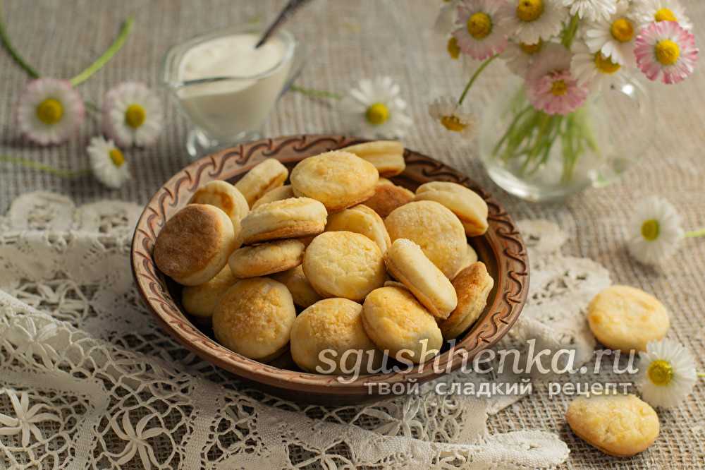 Приготовить не менее вкусное тесто можно со сметаной. Оно получается очень рассыпчатым. С него выпекают вкусное домашнее печенье.
