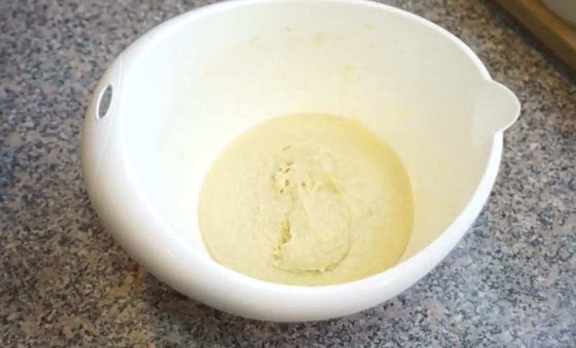 3. Опара за это время поднялась, вливаем ее в тесто.