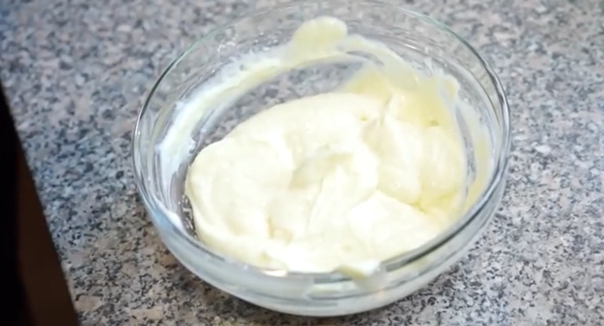 - Смешать творог, желток, сахар, сметану и немного ванилина. Перемешать или перебить блендером (если структура творога зернистая). Ввести крахмал, размешать.