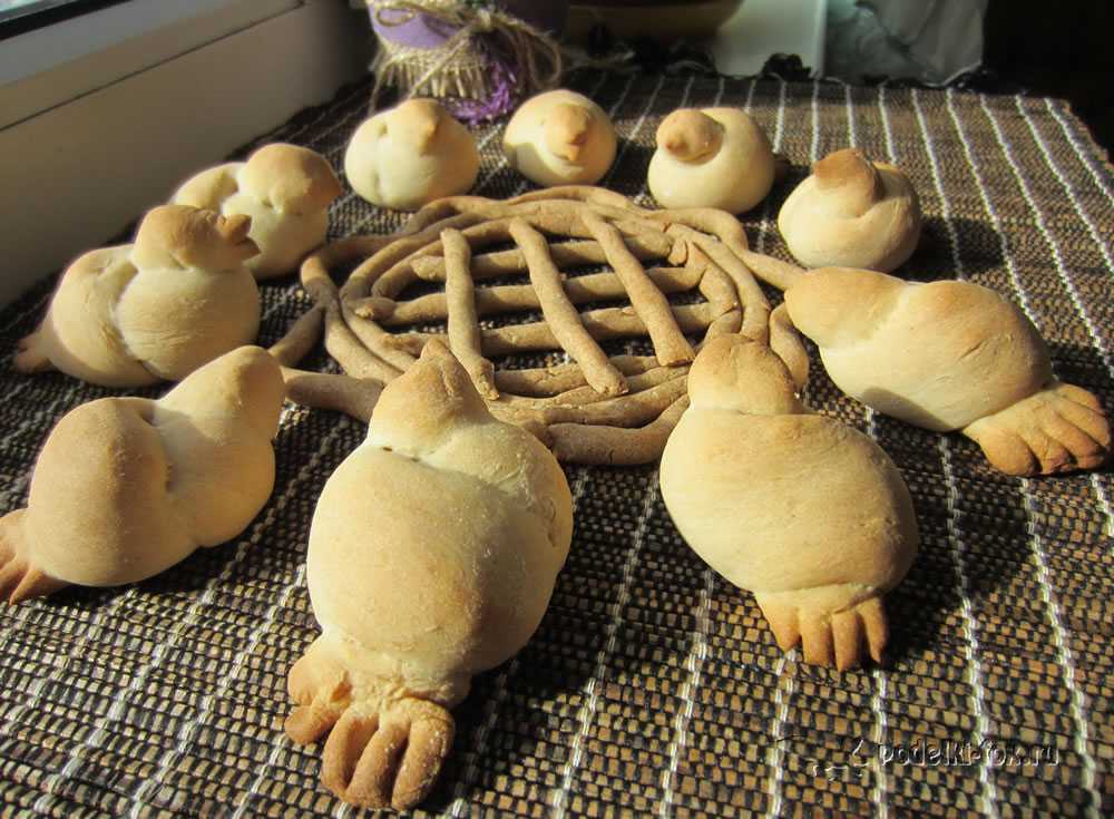 Из ржаной муки месили тесто, раскатывали тонкими жгутами, а потом выкладывали на противень в виде фигурок животных — коней, лосей, коров, птиц.