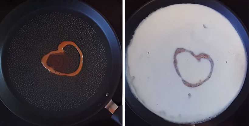 - Массу следует наливать половником на хорошо разогретую сковороду. Нужно дать ему разойтись по всей поверхности посуды. Удобно делать это специальной лопаткой.