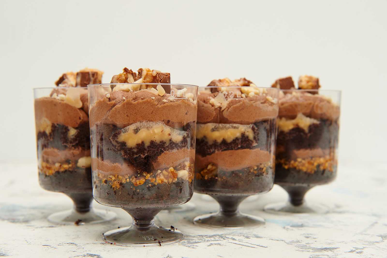 Десерт трайфл – это вкусное чередование сочных и нежных слоев из крема, ягод, бисквита, печенья. Стакан с мягким, не печенным тортиком – невероятно приятный сюрприз к романтическому свиданию. Он украсит любой праздничный стол.