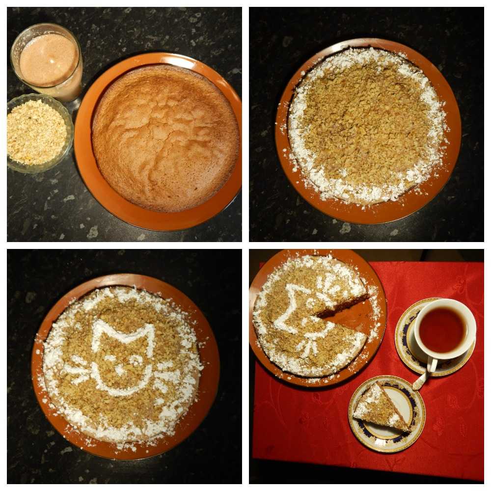 Тут уже на любителя. Отдавая дань названию пирога я еще делаю через трафарет кошачью мордочку.
