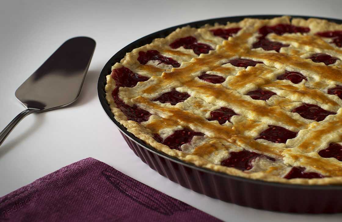 Пирог с малиной, приготовленный по этому простому рецепту, представляет собой хрустящую корзиночку из нежного песочного теста, наполненную тягучим ароматным малиновым джемом и украшенную сверху аппетитной румяной сеточкой. Обилие сочной ягодной начинки на тонком слое пресного теста делает этот пирог довольно легким, полезным и не слишком калорийным. Ароматный песочный пирог с малиной прекрасно подойдет к чашечке чая или кофе в жаркий летний полдень и непременно понравится всей вашей семье от мала до велика!