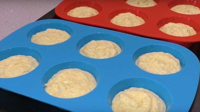 4. Чтобы сырники были круглые и аккуратные, желательно использовать форму для кексов. Наполните тестом каждое отделение формы до середины.