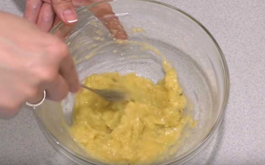 2. Очистите банан от кожуры и разомните его. Можете использовать вилку или блендер.