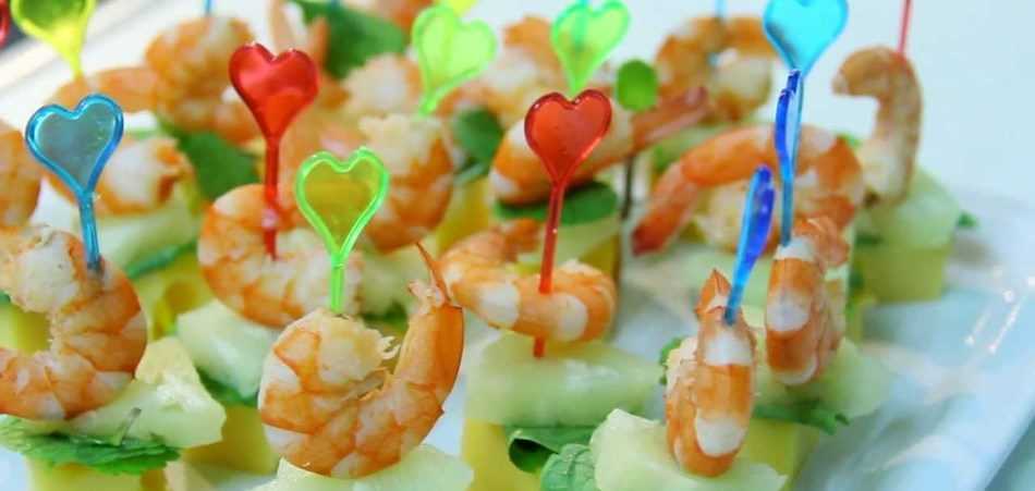 Этот вариант подачи очень удобен при проведении зажигательных вечеринок. Когда гости постоянно в движении, танцуют и веселятся, совершенно не хочется пачкать руки. Шпажки же выручат вас в этом случае.