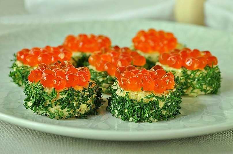 Праздничную атмосферу подымит конечно же яркая черная и красная икра. Вырежьте из хлеба звездочки или елочные игрушки, используйте металлические формочки для этого.