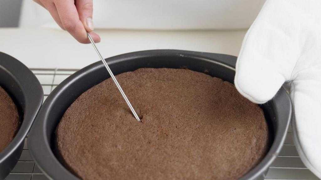 - Поэтому степень готовности бисквита лучше проверить при помощи зубочистки.