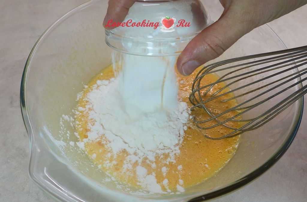 - Порционно добавьте муку, хорошо размешайте, чтобы не возникло комков.