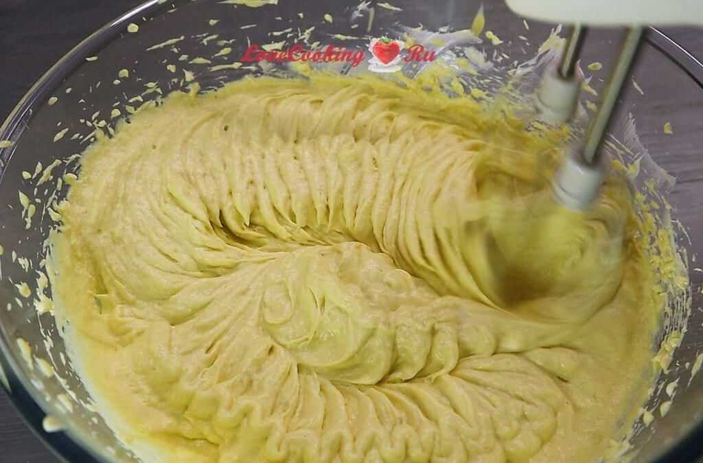 - Замешиваем тесто до однородной консистенции, хорошо взбиваем его.