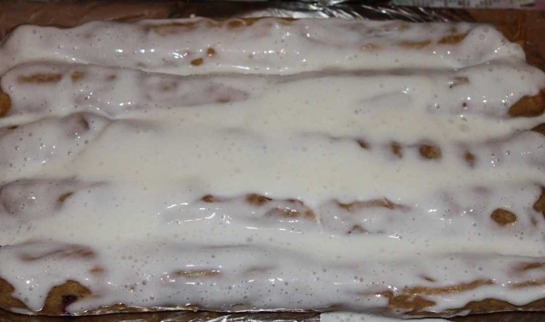 - В очередной раз наносим крем и укладываем последнюю трубочку. Смазываем верх и бока полученной в итоге многослойной выпечки остатками сметанного крема. Убираем практически готовое изделие на ночь в холодильник для пропитки.