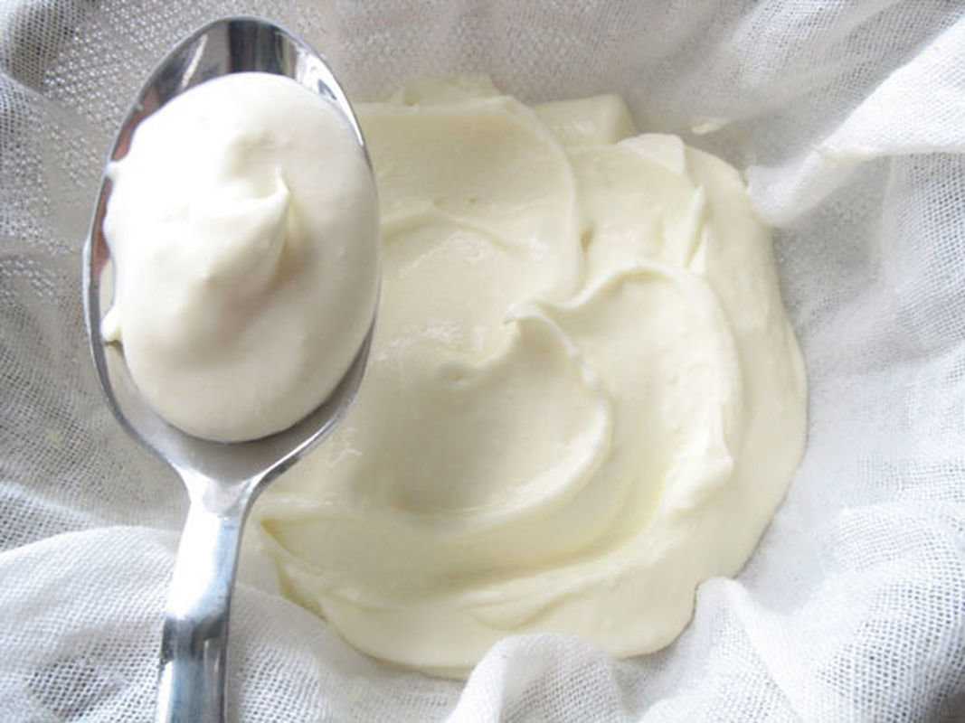 Сначала взобьем сметану с сахарной пудрой, добавим туда размягченное сливочное масло и поставим в холодильник. Сметана должна быть натуральной деревенской или очень качественной магазинной. Если у вас нет возможности добыть домашний продукт, то воспользуйтесь такой хитростью: возьмите дуршлаг, выстелите его марлей в три слоя, выложите поверх купленную сметану.