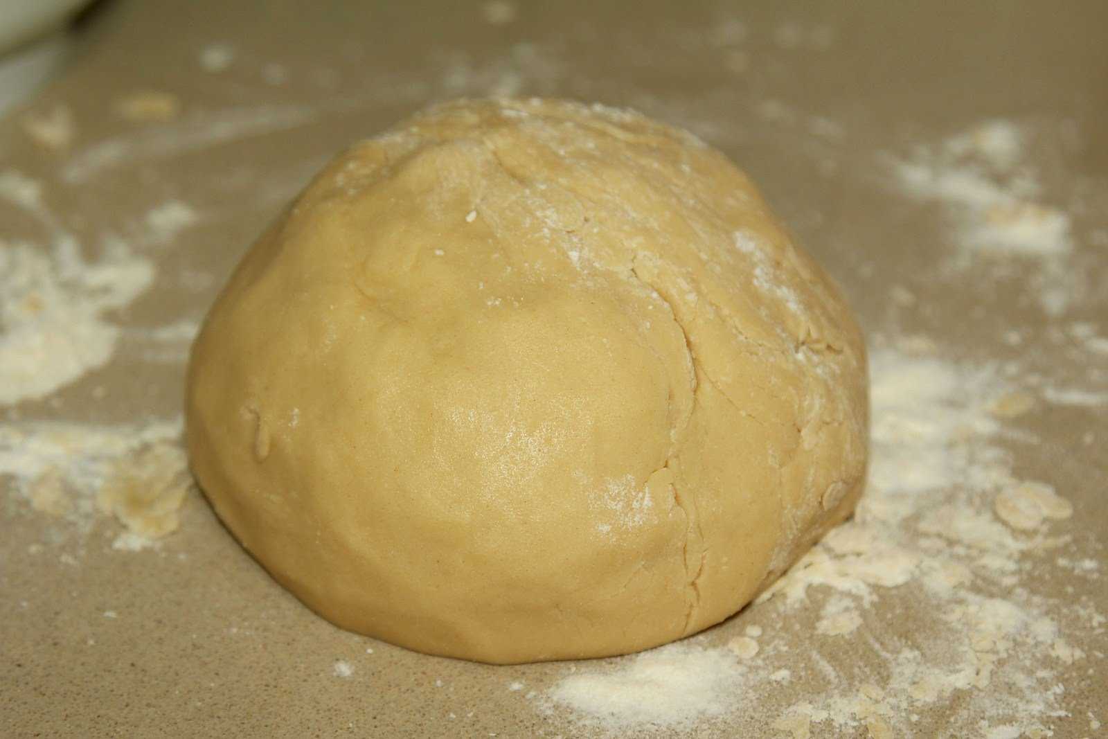 - Емкость с подготовленным сметанным кремом пока убираем в холодильник и возвращаемся к охлажденному тесту, которое, избавив от пищевой пленки и слегка вымесив, разрезаем на три равные части.