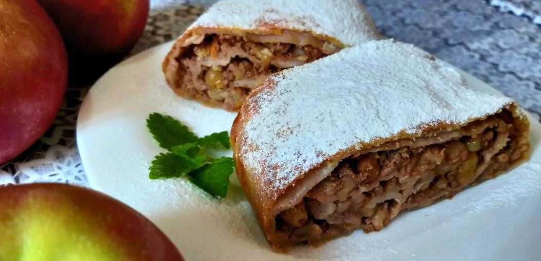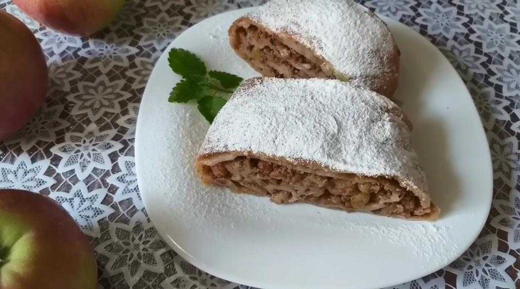 Штрудель с яблоками и грецкими орехами из бездрожжевого теста