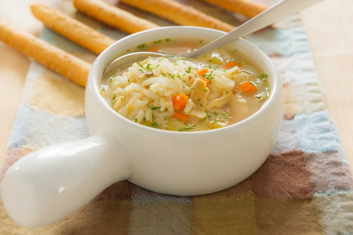 Как варить рисовый суп в мультиварке 1. Почистить и вымыть лук и морковь. 2. Лук нарезать мелко нарезать, морковь тонкими брусочками. 3. Курицу порезать небольшими кусочками. 4. Выложить кусочки курицы в чашу и обжарить в режиме «Жарка» или «Выпечка» без добавления жира. 5. Добавить измельченные лук, морковку и обжаривать еще в течение 5-10 минут. 6. Залить мясо и овощи кипятком для ускорения процесса приготовления. 7. Варить рисовый суп в режиме «Мультиповар» 40 минут при температуре 120 градусов или в режиме «Суп» один час. 8. Через 40 минут заложить подготовленные рис и картофель. 9. В режиме «Мультиповар» готовить еще 15 минут, в режиме «Суп» — до окончания режима. 10. В конце приготовления добавить соль и оставить на подогреве еще на 10 минут. 11. Зелень петрушки и укропа добавить при подаче. По вкусу, готовый суп приправить небольшим количеством черного молотого и душистого перца.