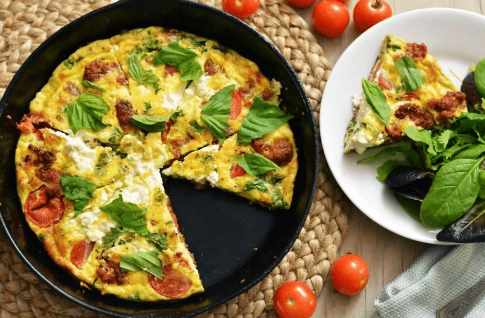 Фриттата – блюдо итальянской кухни, похожее на французский омлет или русскую яичницу-болтунью с начинками. В отличие от простого омлета, фриттата более сытная. Традиционно ее подают на обед или ужин, но не на завтрак. Хороша в сочетании со свежими овощами, овощным рагу или соленьями.