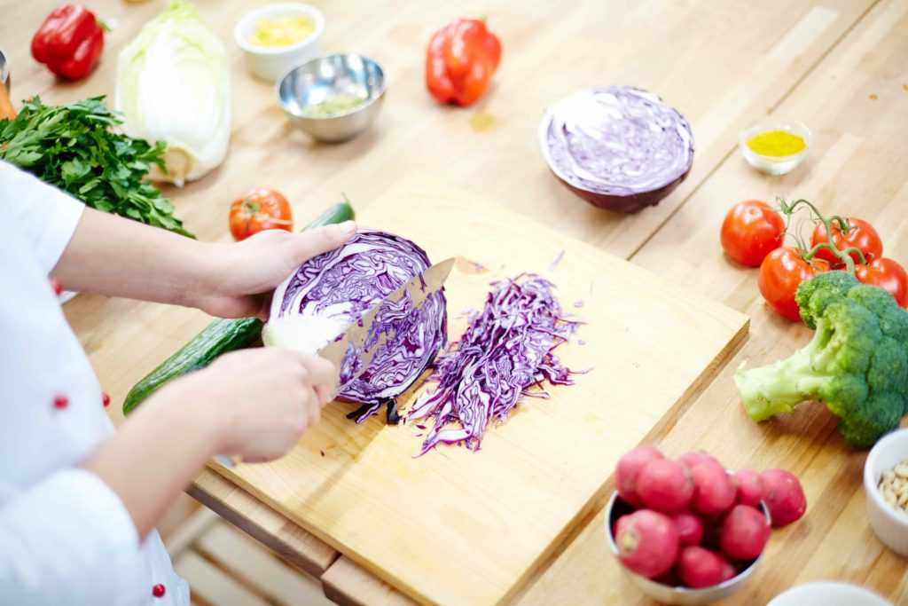 1. Снимите верхние, грубые листы, вилок разрежьте пополам, чтоб удобнее было его шинковать. Приготовленную капусту мелко нашинкуем с помощью ножа или специальной терки.