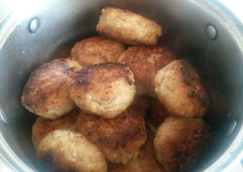 Рекомендации: делать котлеты лучше крупными, поскольку так они меньше масла возьмут на себя. Примерная масса продукта для жарки составляет около 70 г. Масла наливать в сковороду столько, чтобы оно покрывало дно емкости.