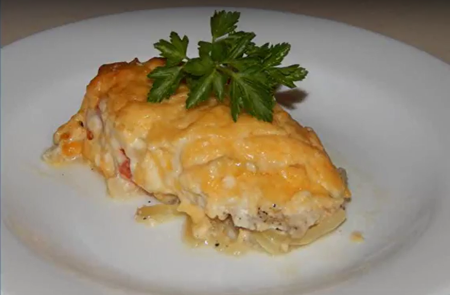Куриное мясо готовится быстро, стоит недорого и оно весьма малокалорийно. Поэтому мы с удовольствием приготовим грудку с картофелем и сыром. К тому же оно выглядит очень презентабельно. Поэтому при подаче такого угощения на праздничный стол, фурор обеспечен.