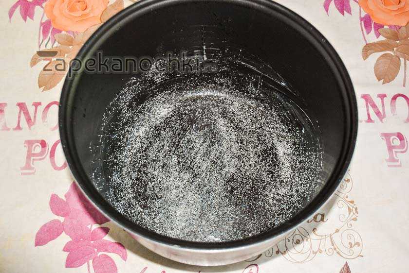 - Чашу мультиварки хорошо смазываем сливочным маслом и выливаем в емкость подготовленную основу для запеканки.
