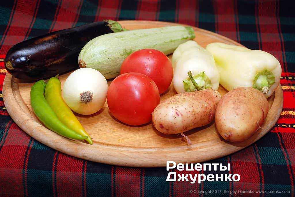 - баклажан, сладкий перец, цуккини – по 1 шт.;