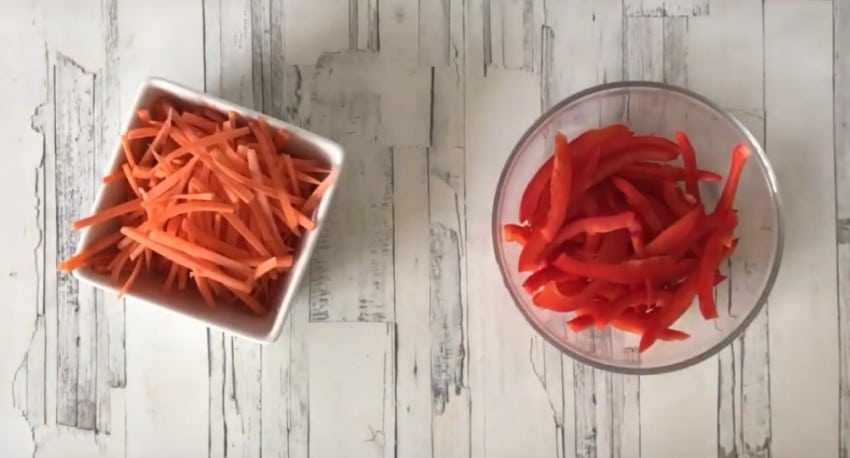 - 225 г моркови (3 средних), очищенных и нарезанных кусочками толщиной 1 см;