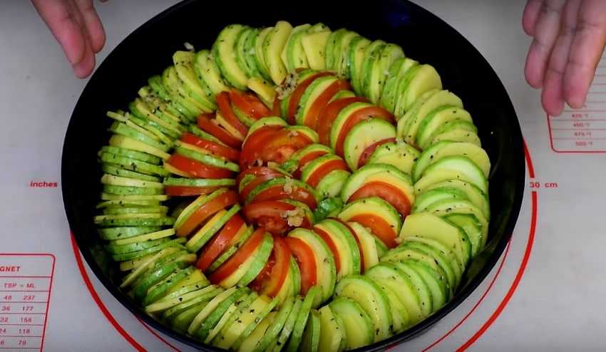 | Кабачки для овощной запеканки в духовке с картофелем почистить, помыть, порезать кружочками. Если они молодые, кожуру можно не снимать. Более витаминно выйдет в итоге.Картошку почистить, вымыть и нарезать кружочками. То же проделать с помидорами. Подойдут и томаты, утратившие товарный вид. Это хороший способ использовать продукцию в пищу. Конечно, если есть помидорчики как с картинки, никто не запрещает нарезать и их. |