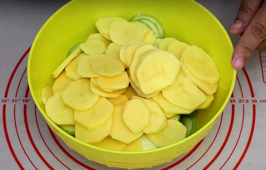 - картофель (отметим, что овощную запеканку с кабачками и картошкой можно разнообразить и любыми другими овощами из списка);