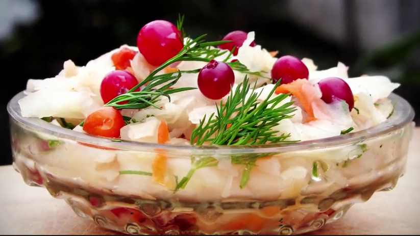 Для улучшения вкуса при квашении в капусту добавляют кислые ягоды — клюкву, бруснику. Таким образом и полезность данной заготовки увеличивается. Предлагаю и Вам попробовать приготовить овощи с яркими красными ягодами.