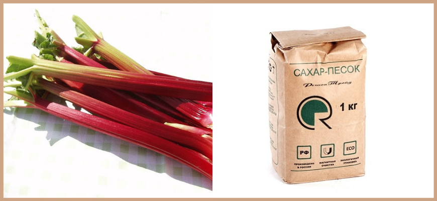 - овощ посыпается сахаром в соотношении 4 к 1 (к примеру, на 4 стакана ревеня нужно взять стакан сахара);