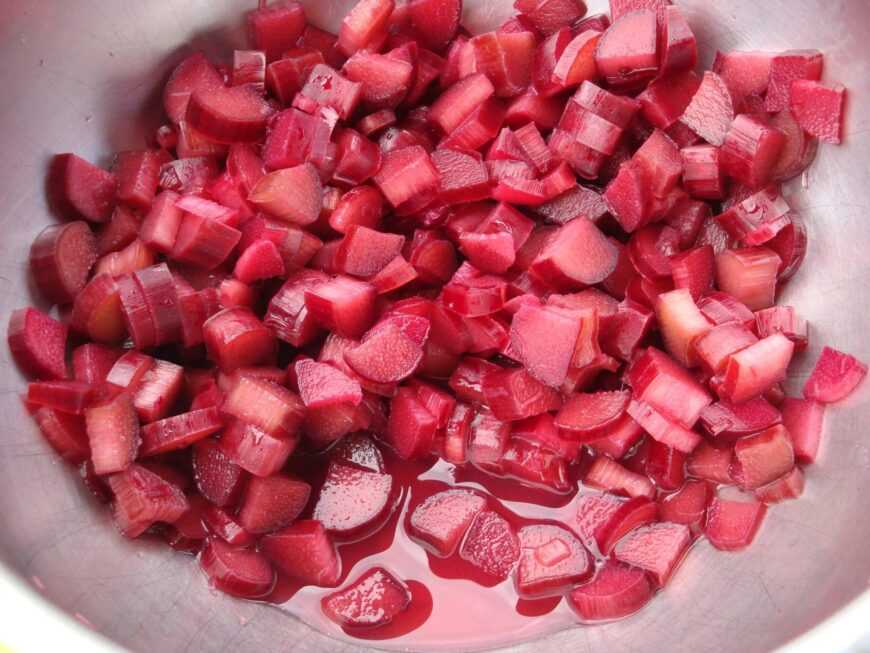 - 700 г очищенного и нарезанного кубиками ревеня;