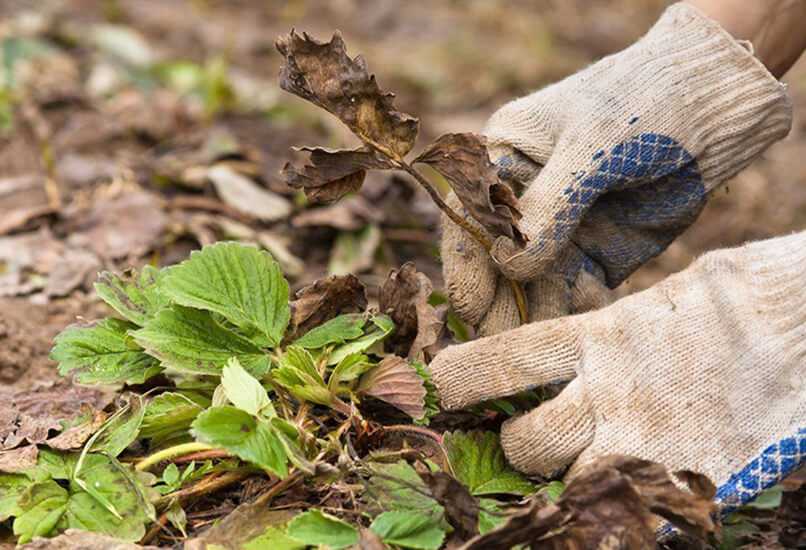 - Оборвите старые, поврежденные и больные листья. Вынесите их за пределы огорода и сожгите, чтобы спящие в них вирусы и личинки не пробудились весной и не атаковали здоровые посадки.