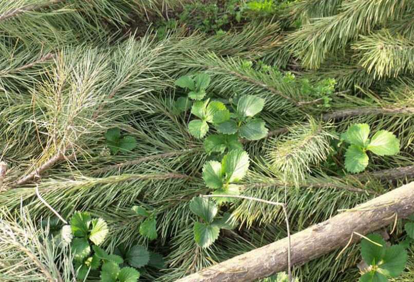 Хвоя замечательна тем, что она не вбирает в себя влагу – кусты под таким утеплителем не запреют. Мыши и прочие грызуны будут обходить грядку стороной, поскольку они не переносят хвойный запах. Кроме того, еловые иголочки можно использовать как удобрение и после схода снега перемешать их с верхним слоем земли.