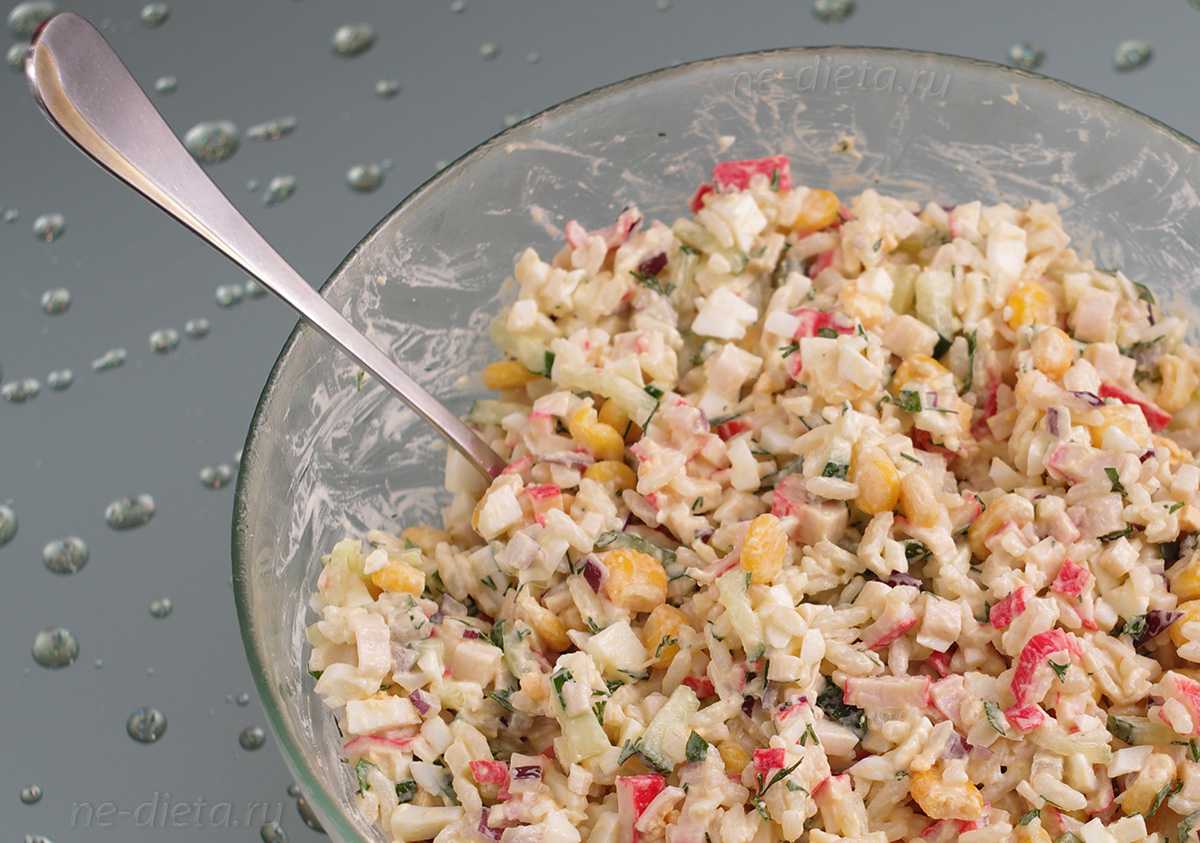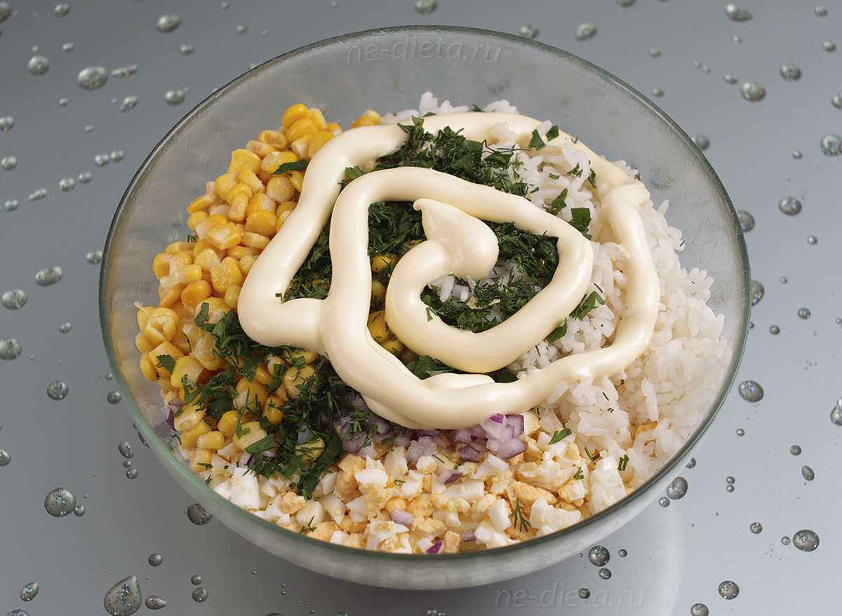 Праздничный салат с крабовыми палочками и рисом без кукурузы