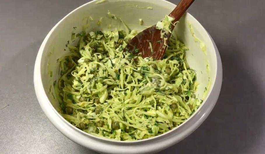 Капустная основа идеально гармонирует с яичными ломтиками и консервированным горошком. Закуска выходит легкой, а приготовить ее несложно. Все составляющие можно найти в холодильнике или ближайшем супермаркете, а потом нарезать салатную массу за 15 минут.