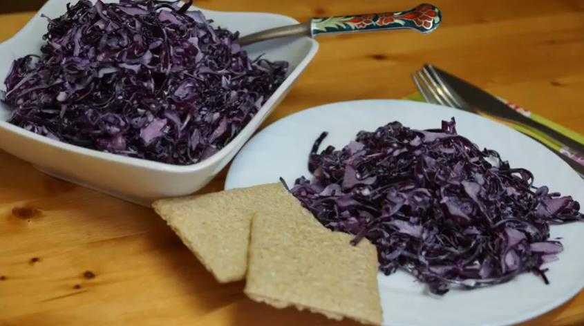 Капуста с красными листьями отличается от своей белоснежной сестры выраженным сладким привкусом и жесткость. Фиолетовая закуска способна быстро и надолго насытить организм.