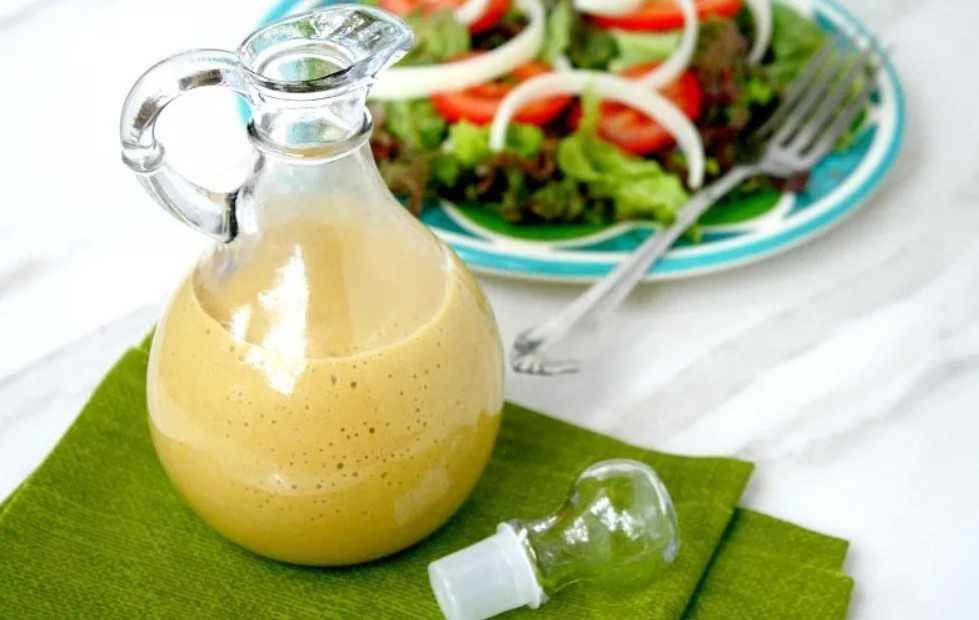 Этот соус рекомендуется употреблять с овощными салатами. Заправка получается очень вкусной нежной и ароматной.