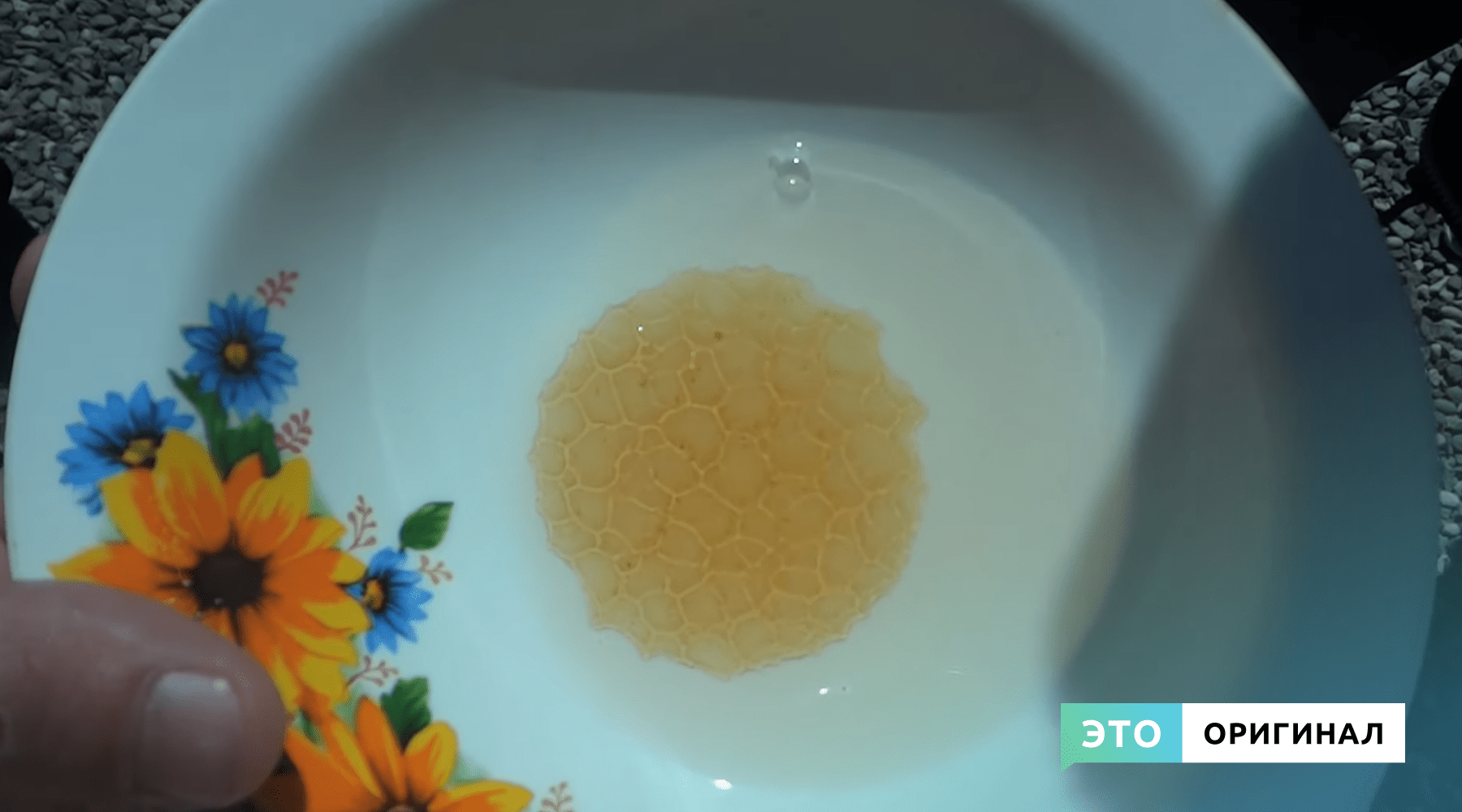 - Способ первый. Для этого способа 1 ложку липкого лакомства следует растворить в чашке прозрачного цвета с тёплой водой. Через час смотрим на результат. Если на дне присутствует осадок или хлопья, которые всплыли на поверхность – это знак подделки.